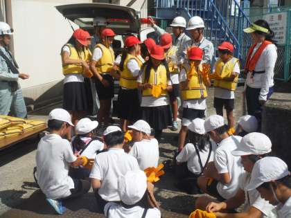 大阪府の治水事務所様のご協力により、出来島水門の見学と神崎川、中島川のクルージングをさせていただきました。ありがとうございました。昨年度、船の故障等で実施できなかったことで、子どもたちは今日の活動を心待ちにしていました。水門の見学では、働きや開閉のタイミングなどの説明を聞きました。クルージングでは、水面の近くスピード感からくる迫力に子どもたちは、とてもとても楽しそうでした。