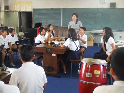 班ごとにリズムアンサンブルを作り、発表しました。