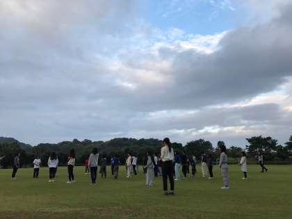 おはようございます。子どもたち少し寝不足気味のようですが、みんなで元気に朝の集いを行いました。