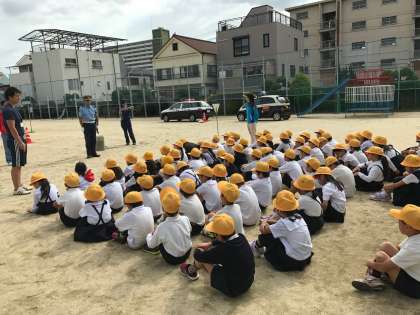 西淀川警察署交通課の方にお越しいただき、安全な歩行について学習しました。