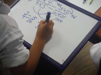「分母が違う分数の大きさを分数で比べる方法を考えました。