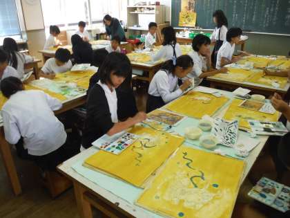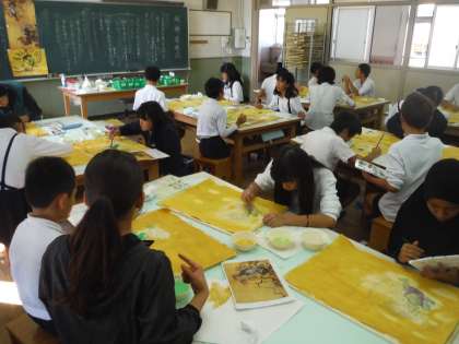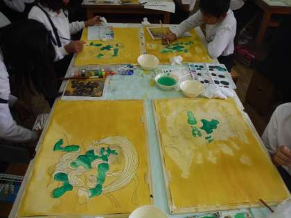 過日にもアップしていましたが、10月中旬から作品展に出展する「風神雷神図」の制作風景です。迫力ある作品になってきています。