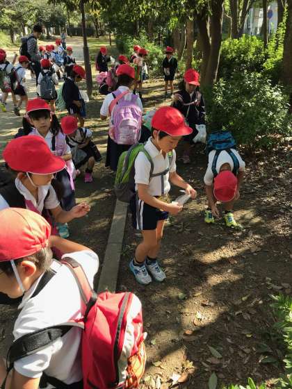 本日、1・2年生合同で小田南公園に秋を見つけに行きました。