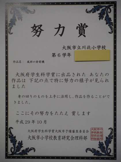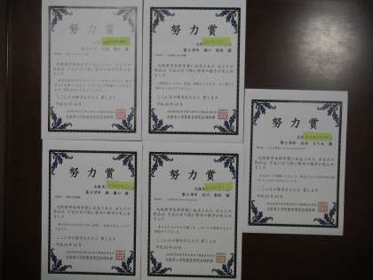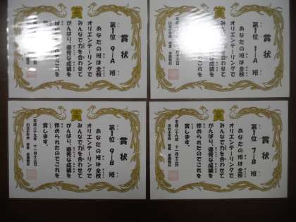 大阪府科学賞と先日実施されたオリエンテーリングの1位の班の表彰を行いました。