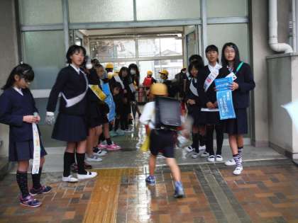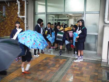 ユニセフ募金活動二日目の様子です。あいにくの雨でしたが、計画委員は大きな声で募金活動をがんばっていました。