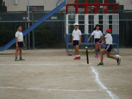 Tボールを行いました。だんだんボールがよく飛ぶようになり、白熱したゲームになってきました。