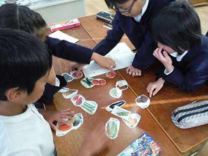 栄養教諭による旬の食材について、学習しました。それぞれの食材を4つの季節に完璧に分けれた児童は、わずかでした。