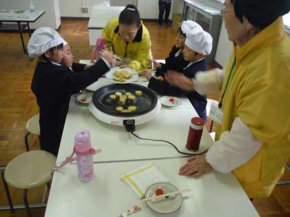 昨日、おいもを植える時から掘り出しまでお世話になった愛育会のみなさんをお招きして、おいもパーティーを行いました。愛育会のみなさんとおいもを焼いて食べながら、楽しいお話ができました。ありがとうございました。子どもたちは「甘くておいしい」と言言っている子や、なかには「世界一美味しい」言っている子もいました。