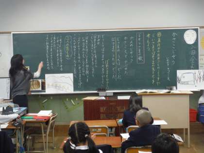 「かさこじぞう」の学習で、真夜中のできごとの様子やじいさまの気持ちを読み取ることをしました。