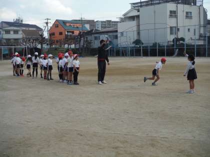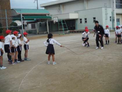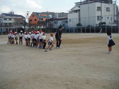 大縄跳びをしました。外は寒かったのですが、子どもたちは声をかけながら元気よく跳んでいました。