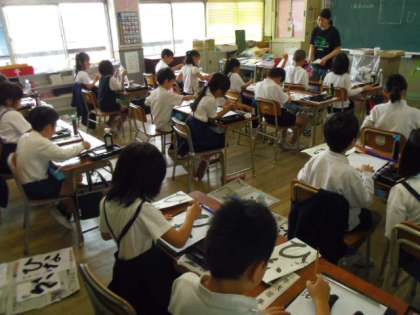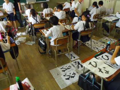 4年生は「ひな」という文字をお手本を見ながら、一生懸命