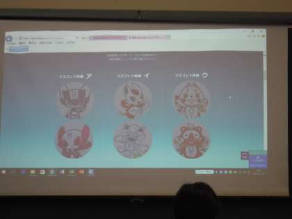 2020年に開催される東京オリンピックのマスコットを決めました。各班で剪定理由を考え発表し、最終個々人で投票しました。この学級では、「イ」を選びました。