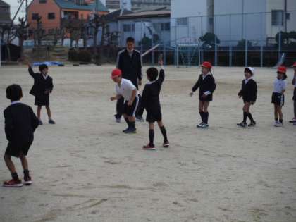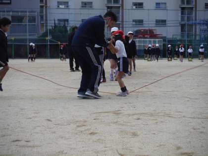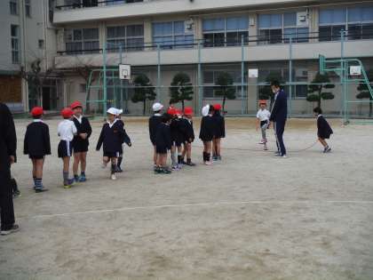 とても冷たい中でしたが、元気に、縄跳び、ボール遊びなどをしました。