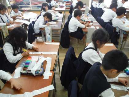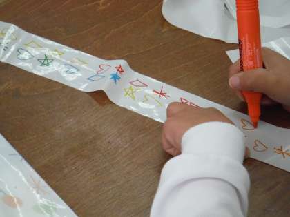 ぐにゃぐにゃだこのあしの部分に思い思いの絵を描いていきました。