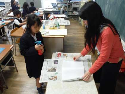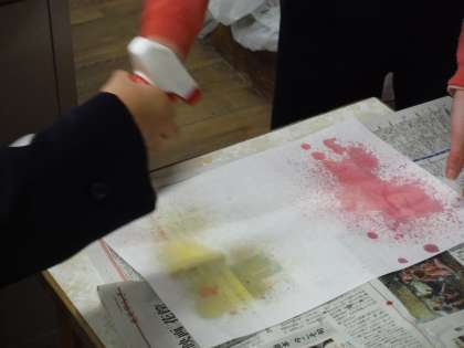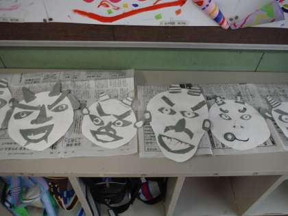 先日から制作している紙版画で作る鬼をはる背景画を作りました。