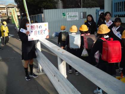 今日から週末の金曜日まで、計画委員会を中心に、朝のあいさつ運動を実施しています。