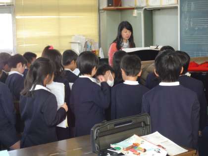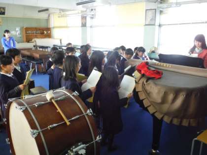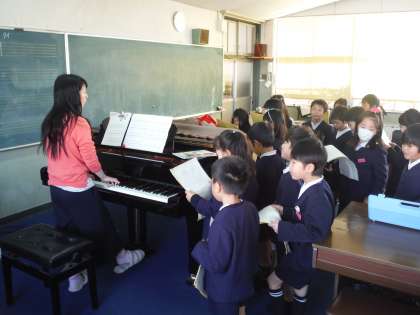 卒業を祝う会で発表する歌を練習しました。
