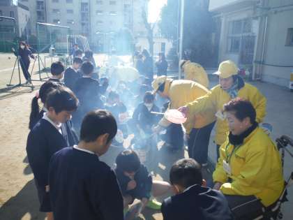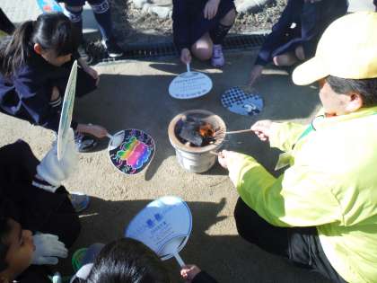 「昔の生活体験」と「地域の歴史」を学習しました。昔の生活体験では、七輪を使ってお餅を焼きました。きな粉や砂糖醤油をつけて食べました。子どもたちは、自分たちで焼いたお餅をとても美味しそうに口いっぱいに頬張っていました。また、地域の歴史では、愛育会の方からスライドをみせていただきながら説明を聞きました。昔の様子を改めて知った子どもたちは、少し驚いた様子でした。今回の活動でもご尽力いただきました愛育会の皆さんに、心よりお礼申しあげます。ありがとうございました。