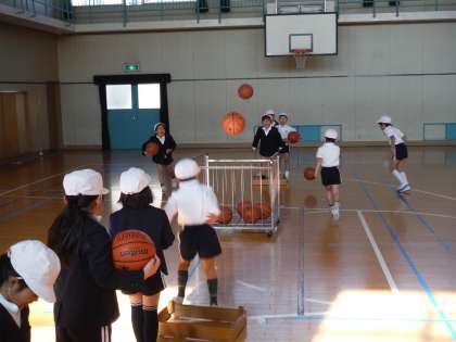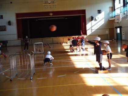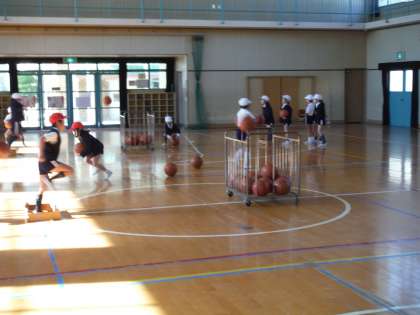 運動場と講堂で、それぞれでボール集めやボール蹴りをしました。