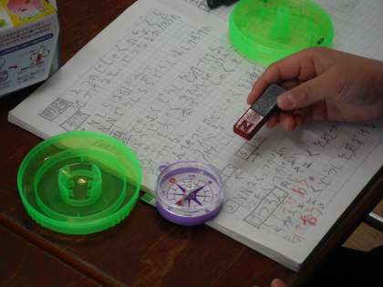 「自由に回転できる磁石はどんな向きで止まるか」を調べました。