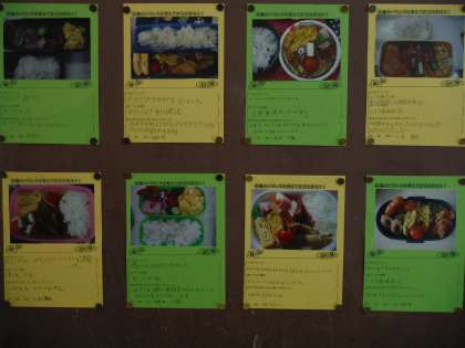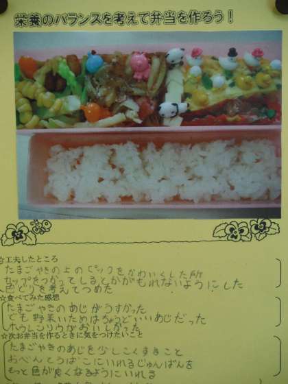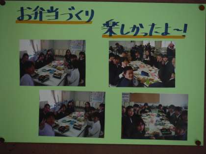 家庭科で作ったマイお弁当の写真とテープカッターです。