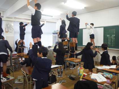 今日室内の高い所や低い所の空気の温まり方を調べました。