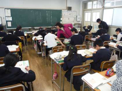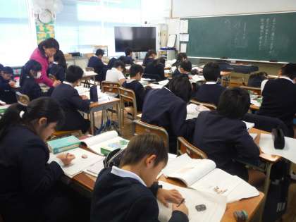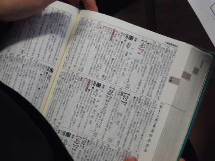 6年生に送る一字を考え、国語辞典で調べて一字を選び、その理由などを発表しました。