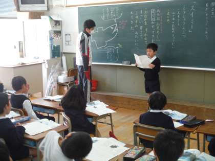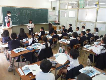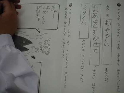 スイミーの学習で、マグロがやってきて食べられそうになった時の小さな魚の気持ちを考えました。