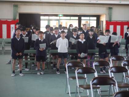 5年生は、在校生代表として出席する卒業式に向けて、実際の式場で練習を始めました。
