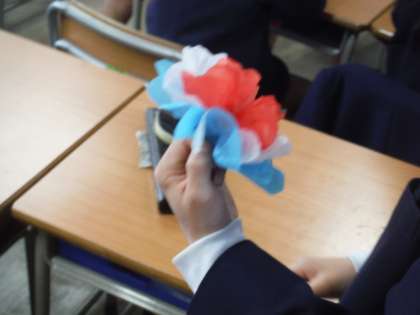 自分たちが2年生修了時に祝うようにお花を各自作りました。