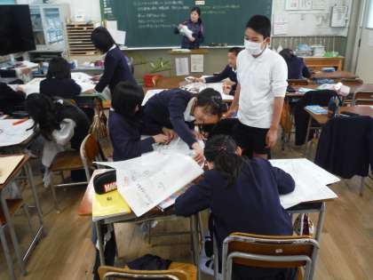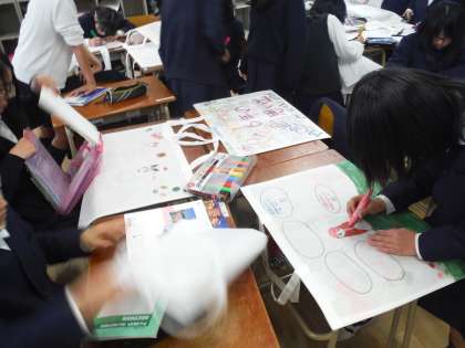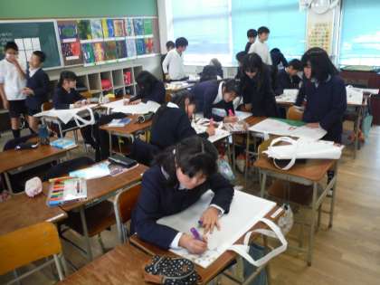 作品持ち帰り袋に友だちのサインを書いてもらう子がいました。