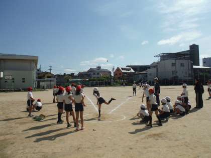 ソフトボール投げをしました。子どもたちは去年の記録を上回ることができたでしょうか?
