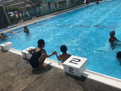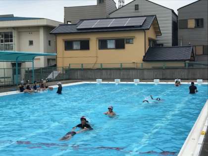 顔をつけることも苦手だった子がバタ足で進んでいたり、息継ぎができなかった子が20m以上泳いでいたりするなど、それぞれの伸びが見られる良い水泳教室でした。中には、25m泳ぎきる児童もいました。子ども同士で拍手したり、ハイタッチしたりするなど素敵な光景が見られました。