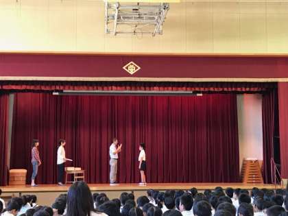 今日の全校朝会では、「ラジオ体操皆勤賞」の受け取りと「いのち」についての話を行いました。