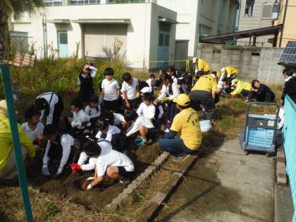 11月6日(火)1・2年生おいもほり 公開日 2018/11/07 更新日 2018/11/07 お知らせ 愛育会の方のご協力のもと、春から育ててきたさつまいもを掘りました。 土を少しずつ、ていねいに掘ると、大きなさつまいもが土の中からたくさん出てきました。 乾燥させた後、日を改めて、おいもパーティーを行う予定です。子どもたちは食べることができる日を楽しみにしています。