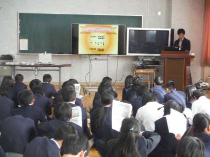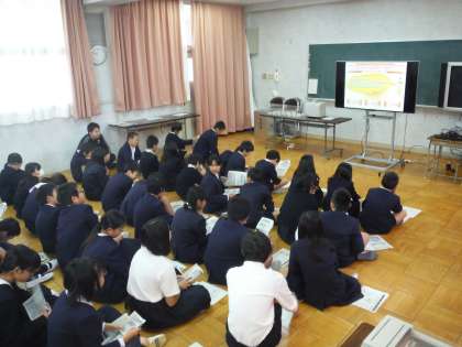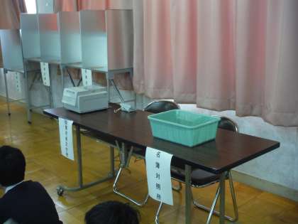 選挙についての出前授業を受けました。 マスコットキャラクターも来てくれました。