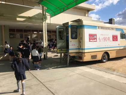 新学期一回目の自動車文庫の様子です。