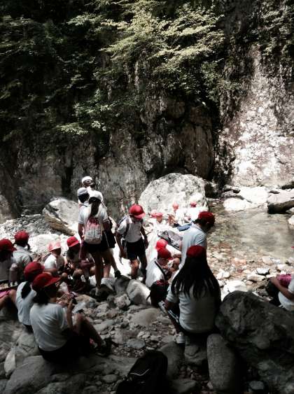 みたらいの滝につきました。水がとても冷たくて気持ちがいいです。