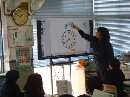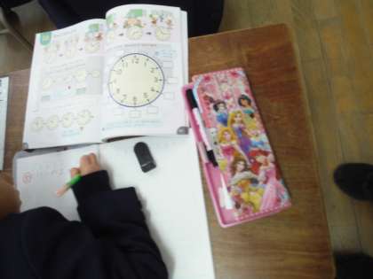 2月5日(火)授業の様子3 時計の学習をしています。長い針と、短い針の意味について学びました。