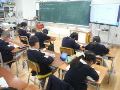 2月6日(水)授業の様子 公開日 2019/02/07 更新日 2019/02/07 お知らせ 3年生 三角形の勉強です。円上の3点を結び、いろいろな三角形を書きました。 辺の長さに注目し、三角形の仲間わけをしました。