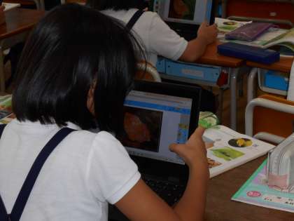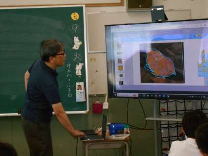 学習者用端末の「かくれた虫」のえいぞうを見て、どこに隠れているかを見つけていきました。わかった人はスカイメニューの「発表ノート」書き込んでいきました。クラスの子の発表が見られて分かりやすかったです。
