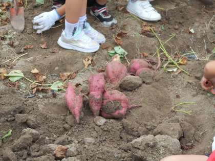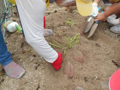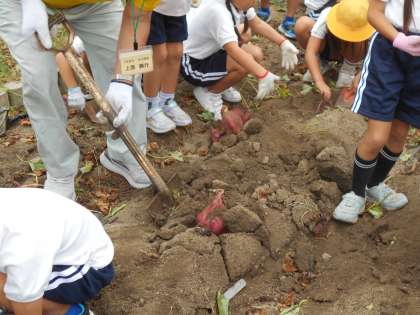 土からのびた葉やつるはほりやすいように、愛育会の方々が切ってくれていました。