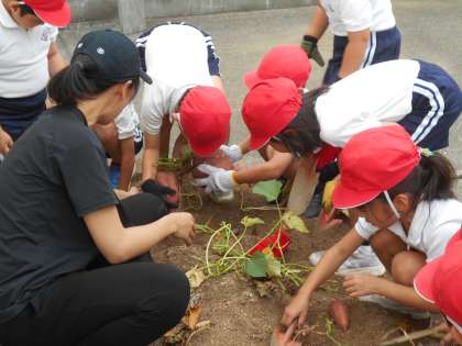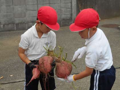収穫したさつまいもは、しばらく置いてからみんなで調理して食べる予定です。