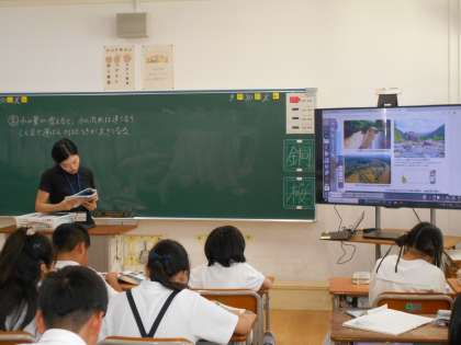 先日運動場で行った、水の流れの実験の結果をまとめました。「水の量が増えると、水の流れは速くなり、しん食や運ぱんのはたらきが大きくなる」ということが分かりました。