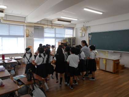 1組は、席替えをしてワクワクしていました。2組は教室の中でみんなで楽しく遊んでいました。