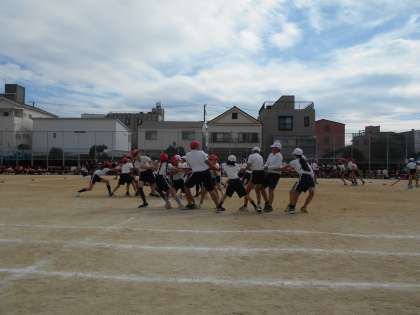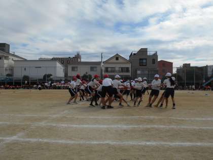 秋空のもと、赤組も白組も力を合わせて、競技に取り組みました。