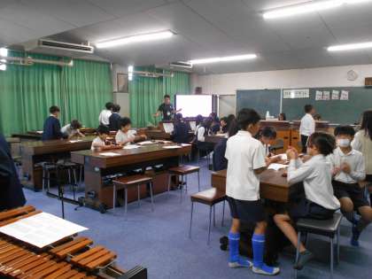 「キリマンジャロ」という曲を合奏しています。今日はパート別で練習していきました。どんどんうまくなっていました。合奏がうまくできるのを期待しています。