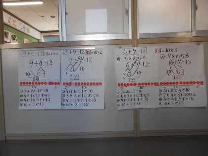繰り上がりのたし算が終わり、くり下がりのひき算を繰り返し練習しています。
