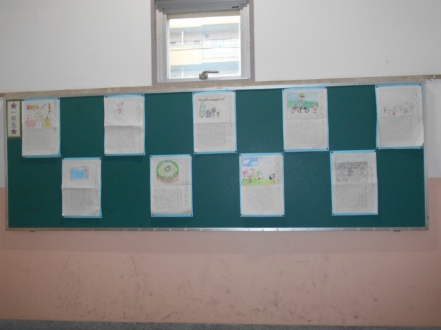 1年生の学年掲示板に冬休みの絵日記が貼られていました。みなさん、いろいろ楽しい冬休みのことを書いていました。