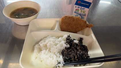 今日の給食では、「いわしのフライ」として出ました。骨ごと食べられるため、骨や歯を強くするカルシウムもたくさんとることができます。 -